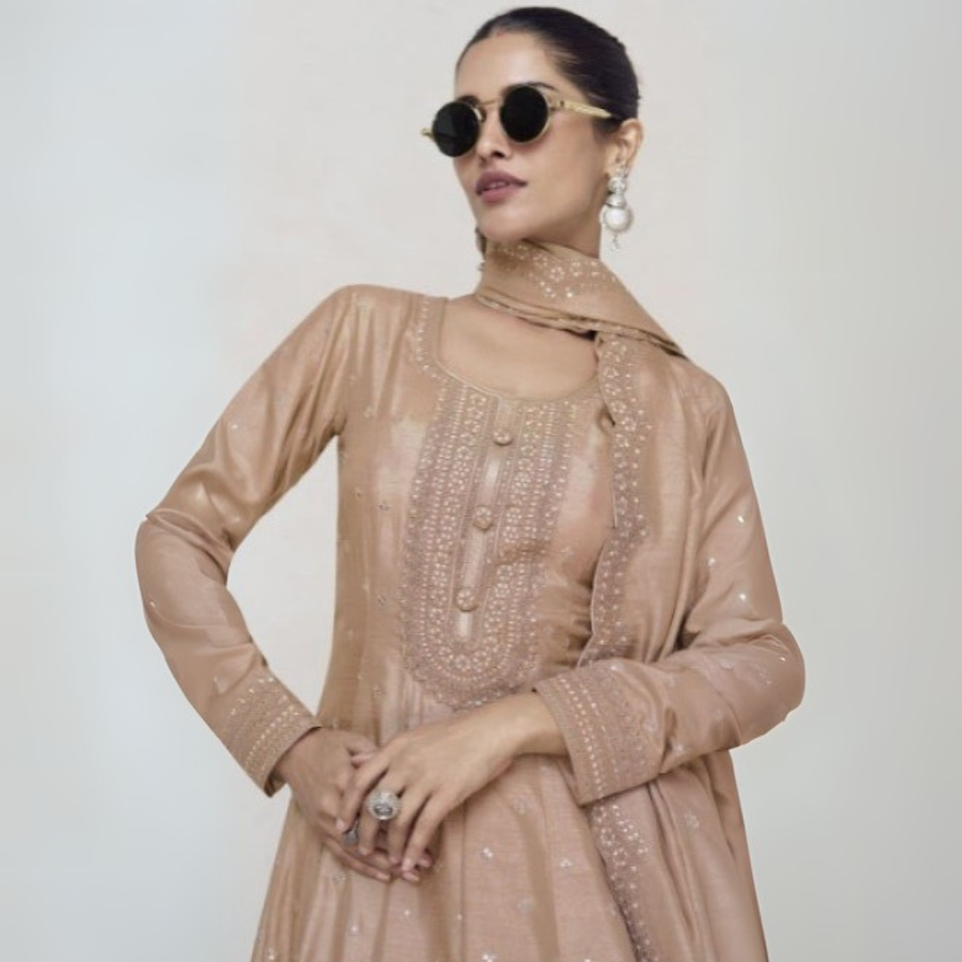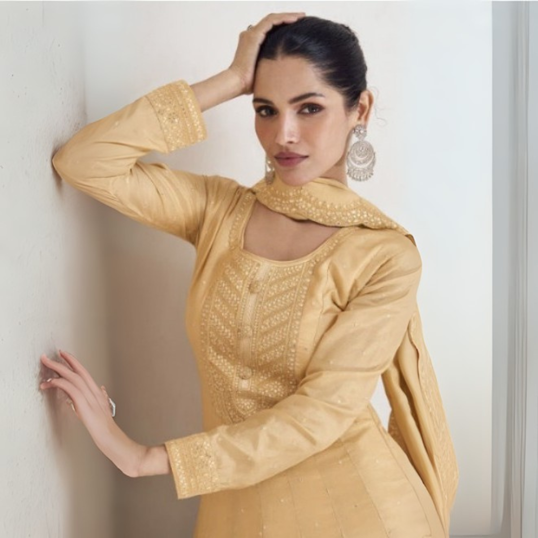Elevate your festive and formal wardrobe with this beautifully crafted outfit, made from luxurious heavy vichitra fabric adorned with sequin and embroidery work. Designed for elegance, comfort, and statement styling.