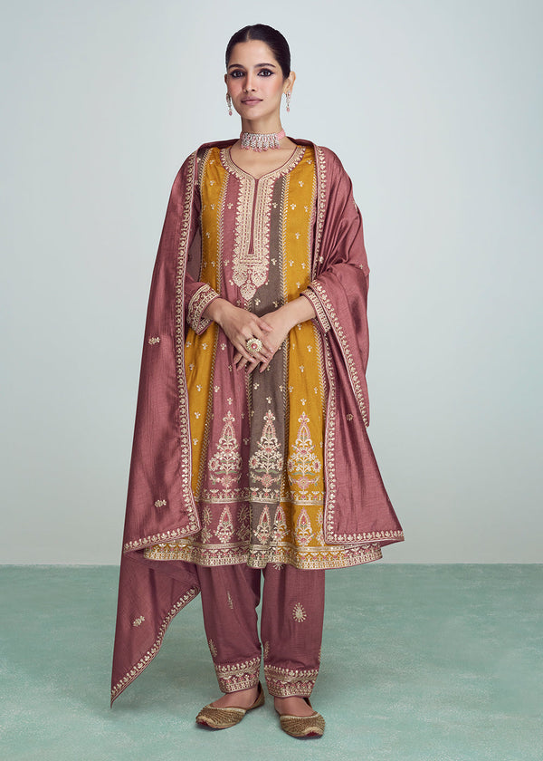 Silk Embroidered Peplum Punjabi Style gown