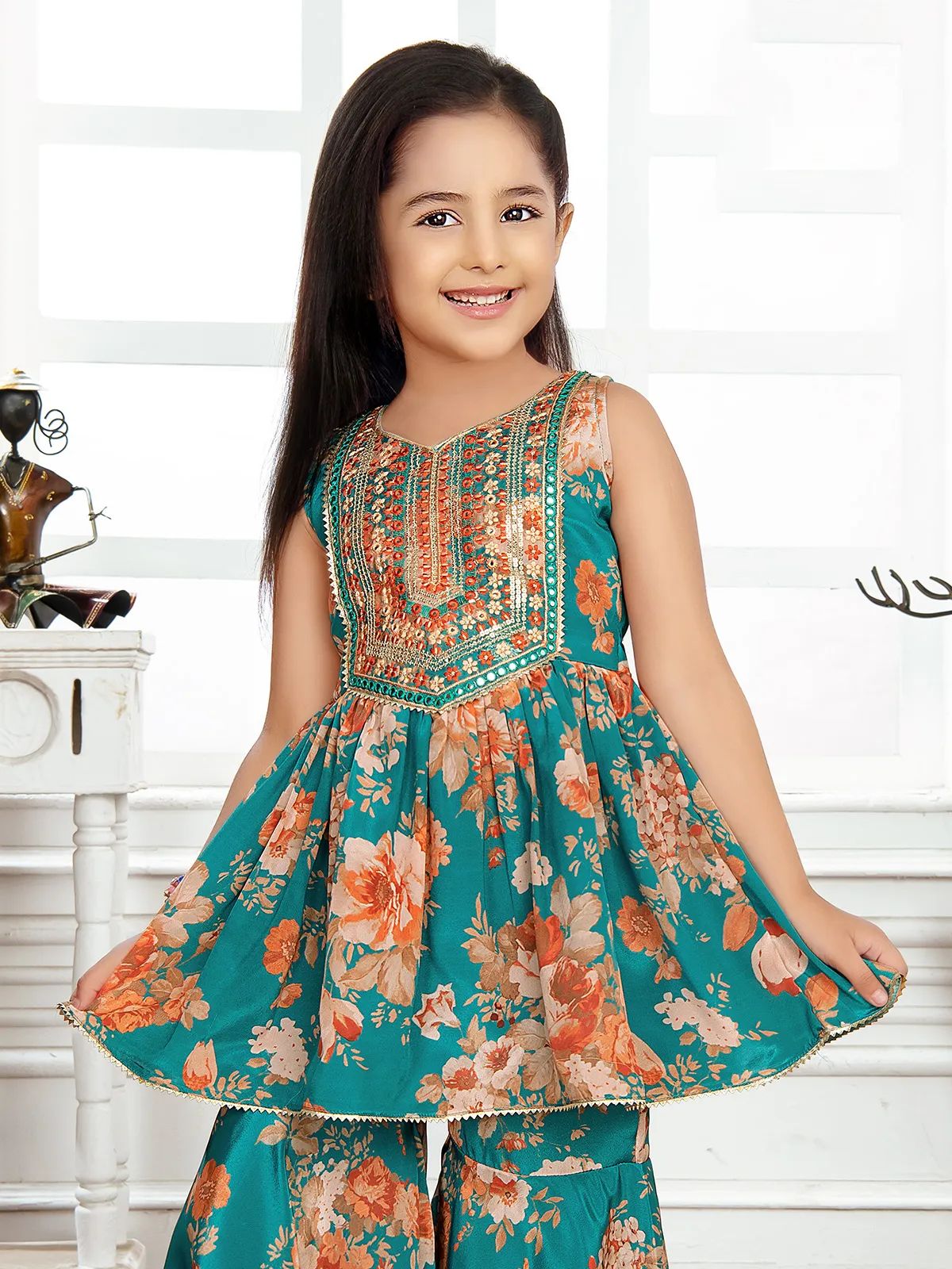 Kid's Embroidered Sequin Work Sharara Set