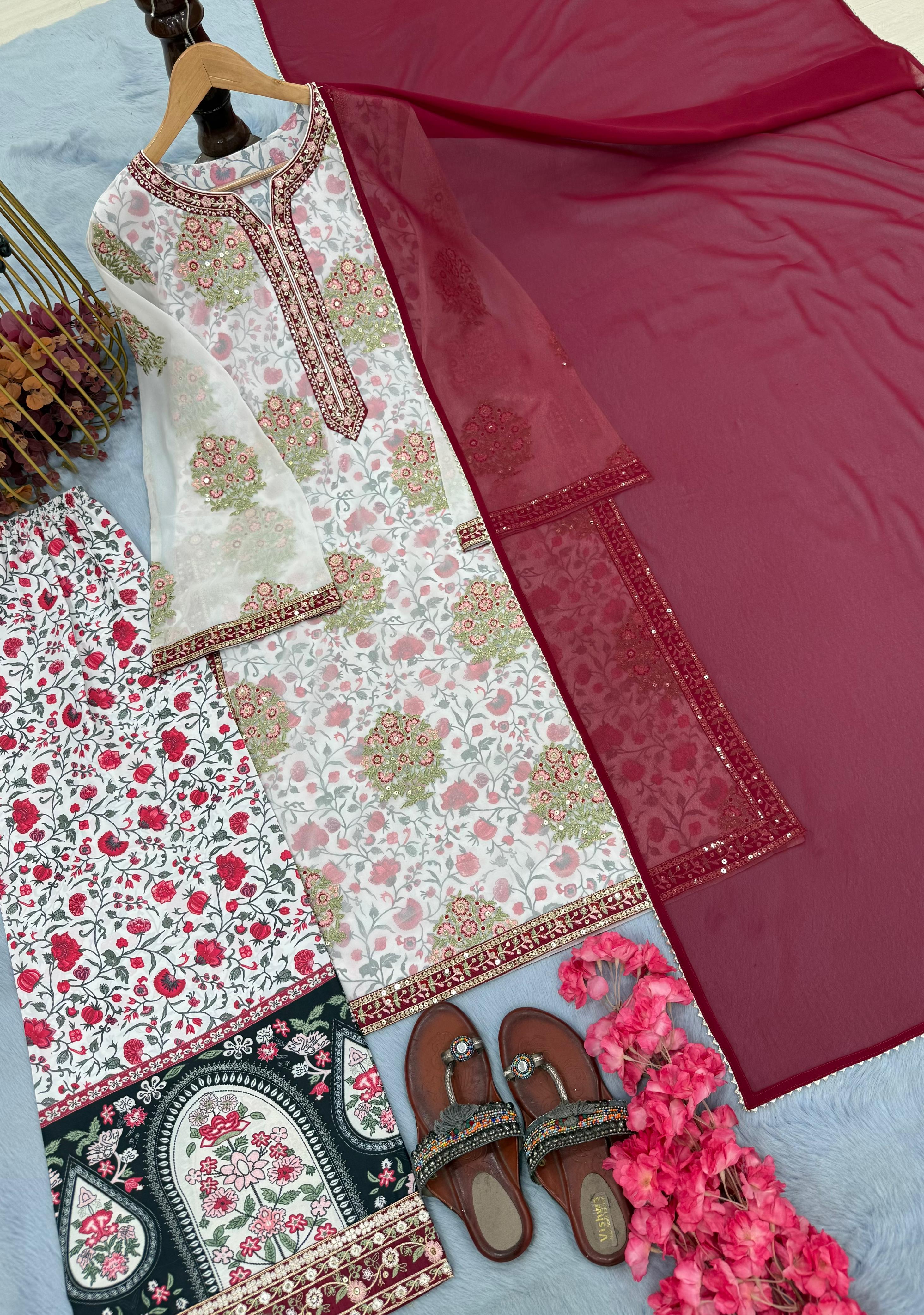 Palazzo: Heavy France Crepe with Digital Print & Embroidery, Elastic Waist
