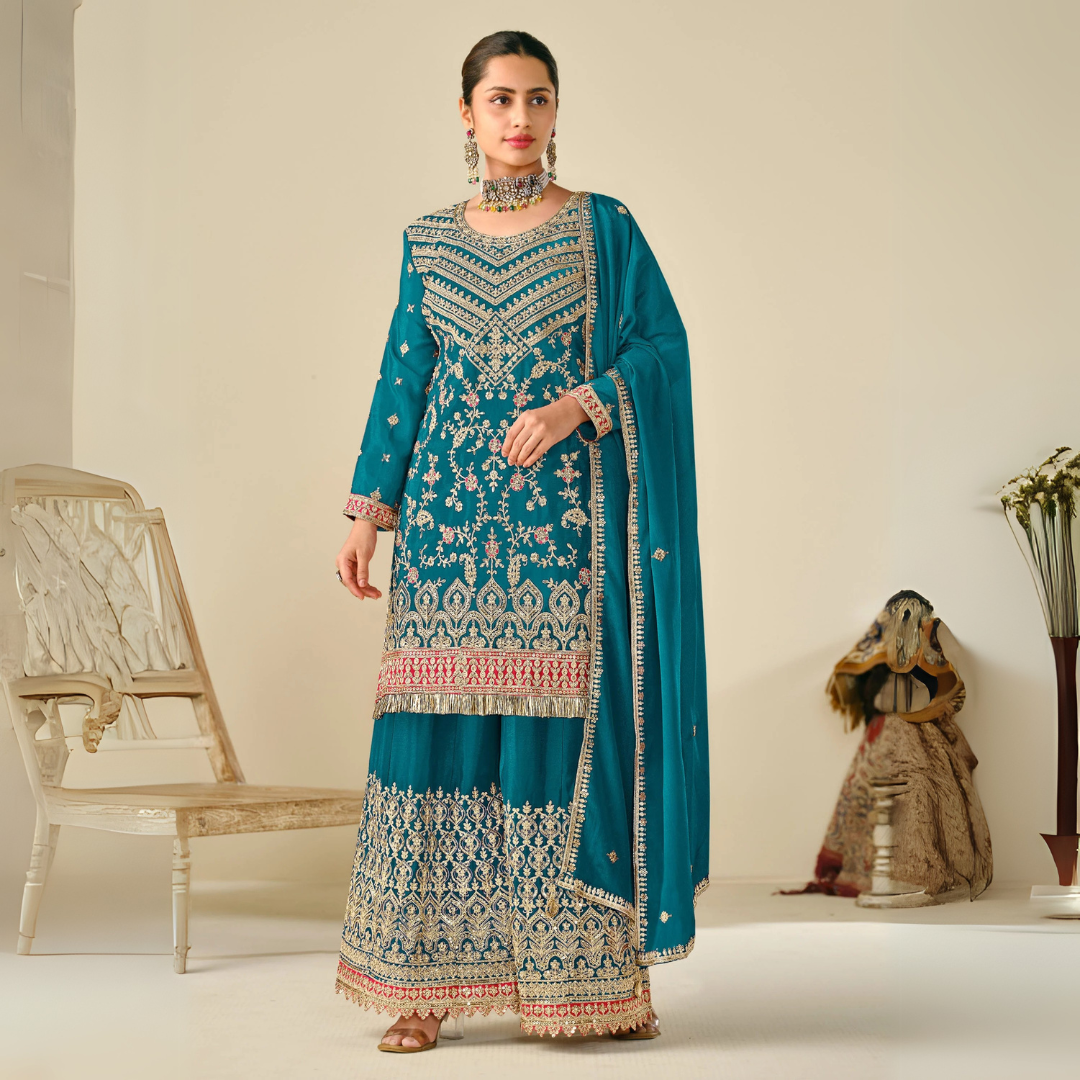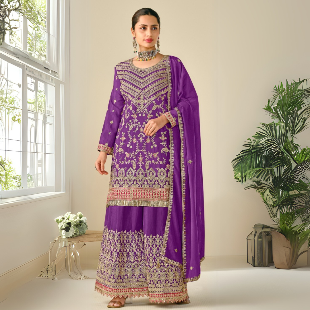 ๐ Heavy Premium Chinon with Matching Heavy Embroidery Work