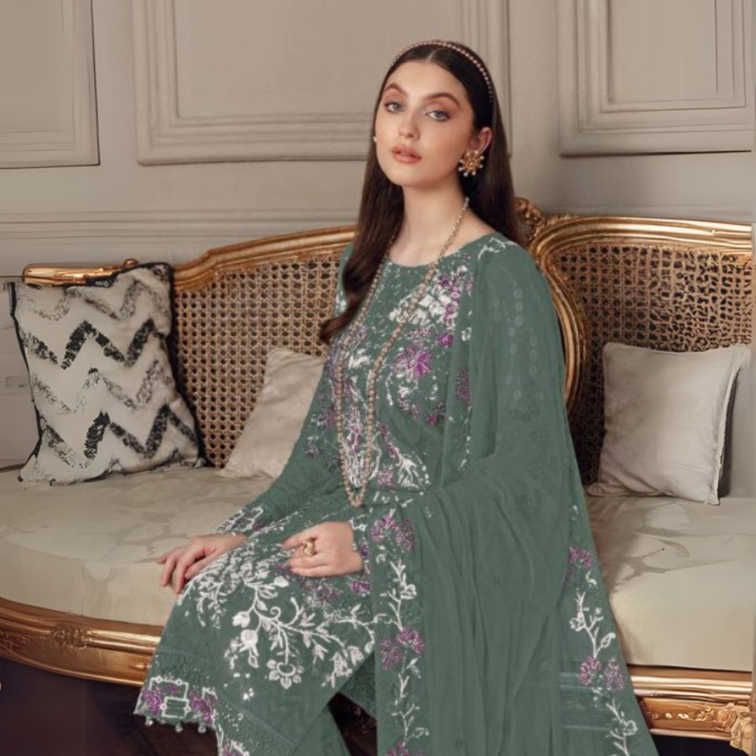 Introducing a stunning ensemble, crafted from luxurious Georgette and adorned with intricate sequence embroidery work 💃. This exquisite set includes a top, dupatta, and bottom, perfect for special occasions and formal events.