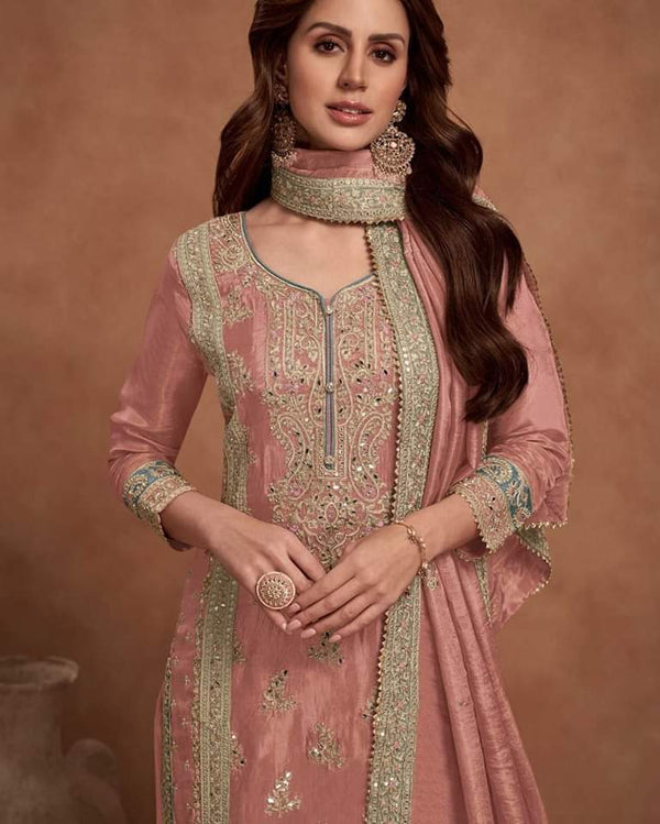 Designer Embroidered Fancy Chinnon Silk Party Wear Suit