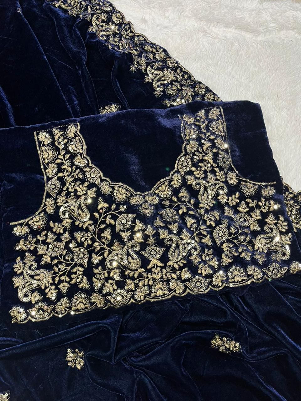 Step into elegance and make a lasting impression with this designer winter saree – a true masterpiece of craftsmanship and luxury!