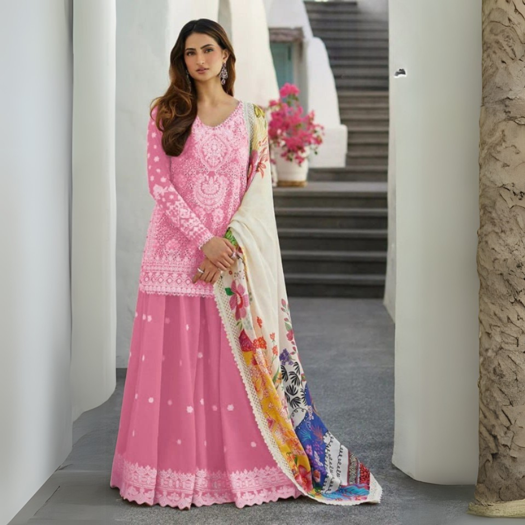 Top: Premium Rayon with Cotton Thread Embroidery & Sequin Work