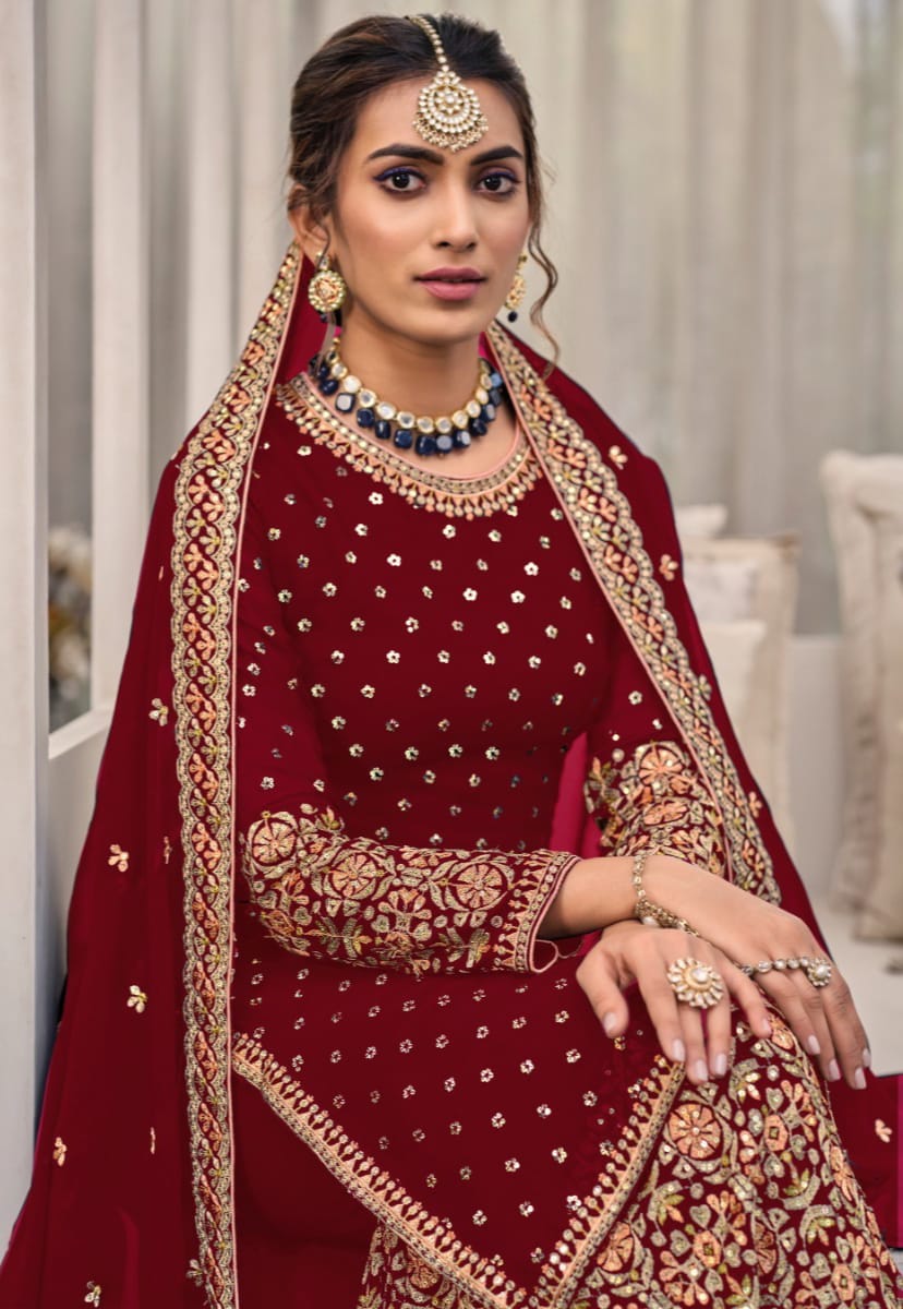 Georgette Sequin Embroidered Plazo Suit