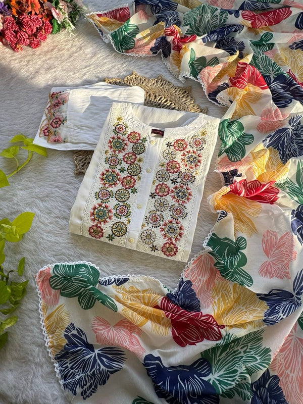 Introducing a stunning kurti pant dupatta set, crafted from premium Roman silk soft fabric with intricate handwork and embroidery details 💃.